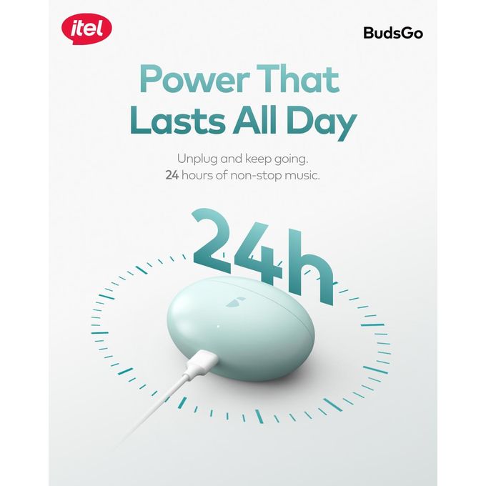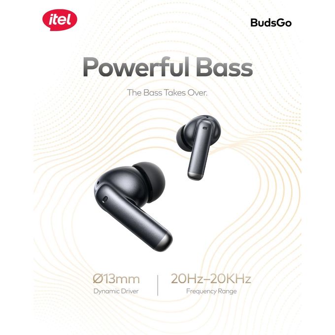 If you’re looking for earbuds that balance style, comfort, and performance, the Itel BudsGo is a perfect match. Powered by a 13mm driver, these earbuds deliver rich, deep bass that makes your playlists feel alive.