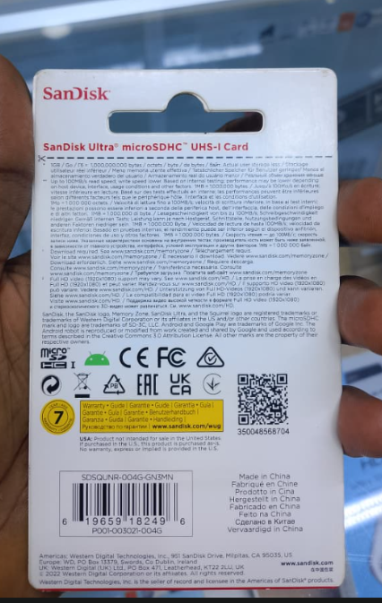 - Memory Management: The product packaging highlights the “SanDisk Memory Zone App,” which is available from the Google Play store to help users view, access, and back up their phone’s files easily in one location.