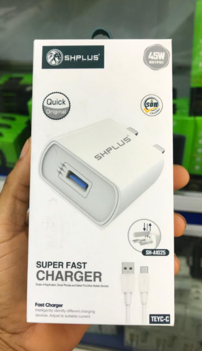 The SHPLUS SH-A1025 is a 45W Super Fast Charger with the following specifications: