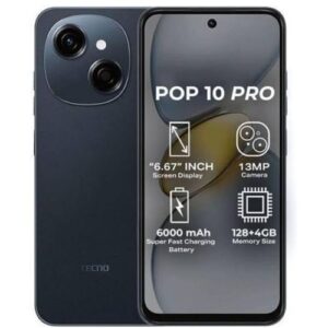 The Tecno POP 10 Pro (4GB + 128GB) is a dynamic smartphone designed to deliver enhanced performance, vibrant display, and durable build, making it an excellent choice for users seeking a powerful yet affordable device. Featuring a sharp 6.6-inch IPS LCD screen with a smooth 120Hz refresh rate and HD+ resolution, the POP 10 Pro ensures immersive visuals for gaming, streaming, and daily use.